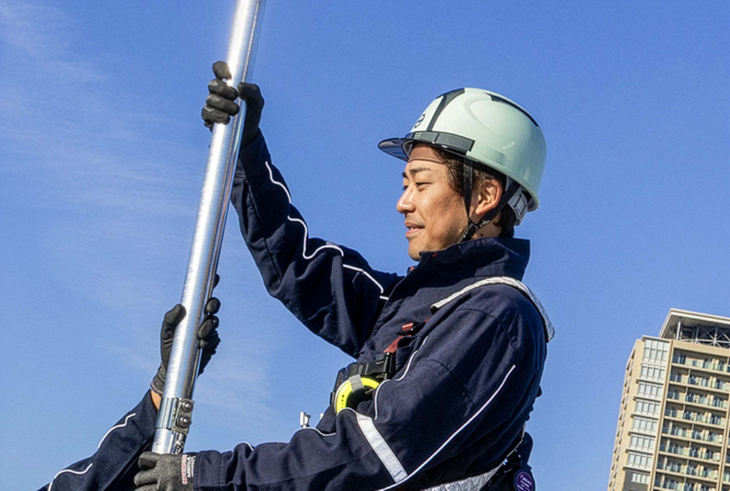 東北各地の現場にて雷保護設備の設置業務を行っています。現場作業がメインですが、一部施工管理の補助業務として現場担当者様との現地打ち合わせや日程調整、新人の育成・教育なども担当しています。